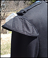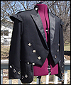 I made this jacket for a gentleman who was attending a wedding in a formal kilt. He wanted a cross between a Prince Charles jacket, and a piper doublet. He provided some sketches of his design, and I worked from there. This jacket is made of wool suiting, and has duchess satin accents. It is fully lined. The front panels are interlined with hair canvas, and padded as a suit jacket would be. |