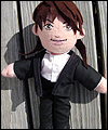 I was commissioned by Unofficial International T.M.R Fan Club Winds-Turbo to make two plush dolls of Takanori Nishikawa in his costumes from his Broadway performance of How to Succeed in Business Without Really Trying. They were to be given to him as part of a fan-based project on the opening day of the musical. His character begins the play as a window washer, and eventually shoots up the corporate ladder at a company after buying a book that is the title of the play. The dolls are made of wool felt, with cotton clothing, and hand-painted faces. |