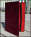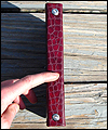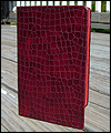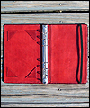 I made this mini binder for a client who wanted to be able to carry a small book to jot down thoughts and ideas on a daily basis. It is made of upholstery leather on the outside, with veg tanned leather on the inside. It has a mini 3 ring binder on the inside, so he can refill it as necessary. There is a pocket on the inside to hold index cards, and an elastic strap to keep it closed. This is my first attempt at any type of book making, and I'm happy with the way it turned out. |