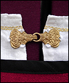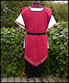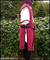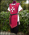 | This knight costume was for my boyfriend to wear at our Midsummer Night’s Dream party last summer. (He didn’t want to dress as a faerie…) It consists of a tunic, pants, and a tabard with a Maltese cross appliqué. The pants and tunic are made of linen. The pants feature a wide cuff that laces around the calf. The tabard is suede cloth with a contrasting cotton liner and bias tape edgework. The leather belt was hand-dyed and finished with a brass ring for closure. |