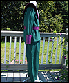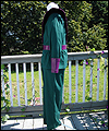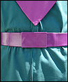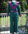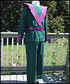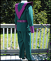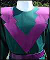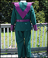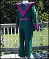 This costume is a classic super villain from Marvel Comics. It is made of cotton broadcloth, with stiff interfacing inside of the lightning bolt on the chest. The belt and the arm bands are made of leather, and finished with a high gloss leather paint that matches the color of the fabric. |