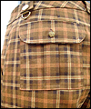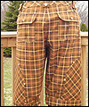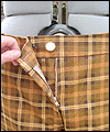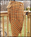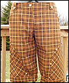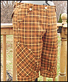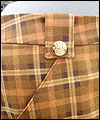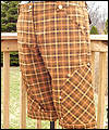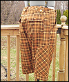 These plaid shorts are a recreation from a brand-name lolita label. My client requested the colors, and some alterations to the original style. They are made of denim-like 100% cotton, with metal buttons, and a removable pleated half-skirt. I took great care in matching the plaid on both sides of the pants to create a symmetrical look. I remember that I almost went crazy trying to find gold clips for the skirt, in order to match the buttons, but in the end, my persistence paid off! |
