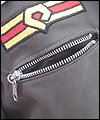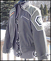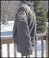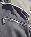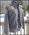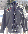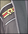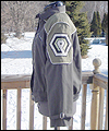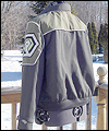 | This coat is a recreation from the anime Gundam Wing Endless Waltz. It is the forth such coat that I have made- the first three being those also displayed in this Gallery, which I created several years ago. This coat is made of polyester twill with a cotton twill lining. All of the patches are hand made, using appliqué techniques. It has functional pockets on the sides and chest, and hand-made cording adorning all of the seams. Adjustable straps adorn the sleeves. The yoke and shoulder fabric was custom-dyed to match the color that my client requested, and is made of cotton twill. The zipper is an extra large size, which was another special request from my client. It measures a full half-inch when closed. The waistband is made of cotton rib knit. |