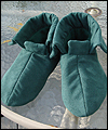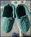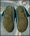 | I made these slippers for a client who wanted to give them as a gift to a friend who loves a video game in which “ranger boots” were a prop that his character had. She wanted me to make comfortable slippers that he could wear while playing the game. They are made of suedecloth, with a fleece lining. The bottom sole is made of suede leather. |