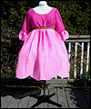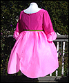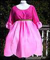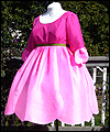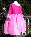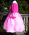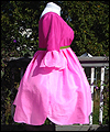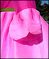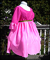 This dress was one of 6 that I created as bridesmaids' dresses for a fantasy wedding. Each bridesmaid represented a different flower. The bride designed the dresses, and I worked from her sketches. This skirt of this ensemble resembles a Japanese cherry blossom flower. I custom dyed the dupioni silk that this outfit is made of, and airbrushed the petal panels to give them more character. There is a white silk skirt lining under the petal panels for modesty. |
