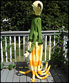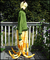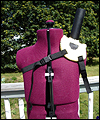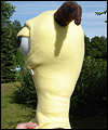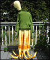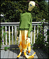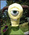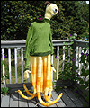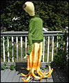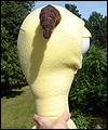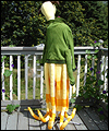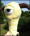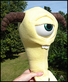 This was from a set of Monsters University costumes that I made for a family who wanted matching Halloween costumes. This is a child-sized costume. The character in the movie is 2 headed, so naturally the wearer was one of the heads, and I made a puppet head for the other one. The puppet head is made of foam, and covered in fleece. I painted the eye onto the inside of a large clear round ball, and built it into the puppet. The head affixes onto a shoulder harness that I made by molding thermo plastic over a body form, and adding straps and a pole for the neck of the puppet. I also made a set of faux arms, and a 4-armed, 2-necked sweater. The sweater was custom dyed. The tentacles are made of polyfil-stuffed fleece, with heavy duty wire on the inside to shape them. They are all bound on the top by an elastic waistband. I airbrushed the stripes onto them, and made matching fleece pants to wear underneath. Finally, I made a horned headband for the wearer, that matched the horn style of the puppet head. |
