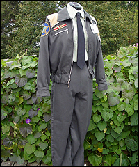 Preventer This costume is one of a set of three that I made for my friends and I to dress in at an anime convention a few years ago. It is a recreation of the Preventer uniforms worn by characters in the anime movie Gundam Wing Endless Waltz. The pants and coat are a polyester suiting fabric, with cotton blend shoulder and yoke accents. I hand-made all of the cording and created the patches with appliqué techniques. The dress shirt is cotton. I made the dress shirt instead of purchasing one because it is an unusual green color, and I was unable to find one that matched those in the show. |