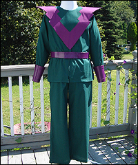 This is a recreation of General Zod's silly costume from Superman 2. My client had quite a sense of humor about this retro look! He wore it to Dragon*Con. It's made of cotton broadcloth, with vinyl accents. The pants have hidden pockets in the side seams. My client provided his own boots and his own megalomania. |