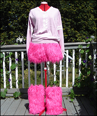 This was from a set of Monsters University costumes that I made for a family who wanted matching Halloween costumes. I purchased a sweater for this costume, and then silk screened the design onto the front and sleeves. I made the shorts and the legwarmers out of plush faux fur. The legwarmers had elastic casings at the tops to hold them in place. |